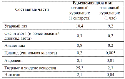 Составные части табачного дыма, вдыхаемого при активном и пассивном курении