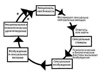 Как работает мозг женщины. В 1960-х годах ученые Мастерс и Джонсон высказали мысль о том, что сексуальное возбуждение строится по линейной схеме — от желания через возбуждение к оргазму (см. выше). Мужчины твердо придерживаются этой схемы, но в 2001 году Розмари Бэссон заявила, что женское сексуальное возбуждение имеет тенденцию к круговому образцу и необязательно начинается с чувства сексуального желания (модель Бэссон — нижняя).