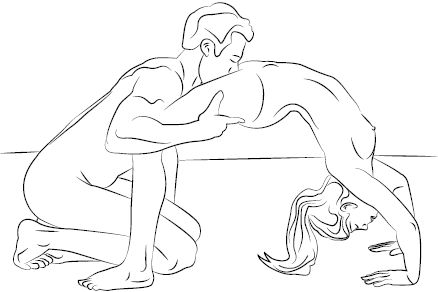 Она вспоминает добрые старые традиции, как на физкультуре в пятом классе, и становится на полу в классический «мостик». Он устраивается на коленях между ее ногами и поддерживает ее за бедра. Посмотрим, насколько близко к раю вы сумеете подобраться, прежде чем ваш мостик рухнет!