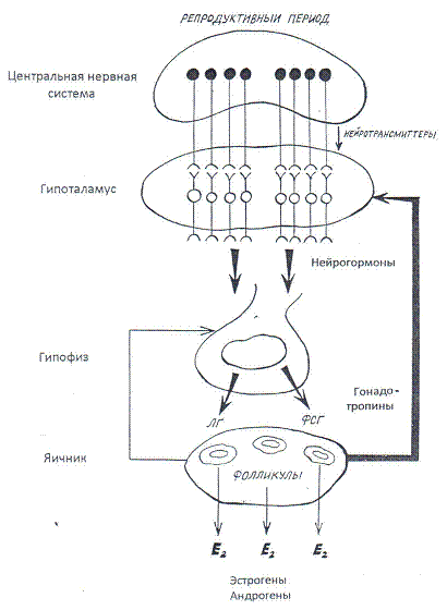 К регулирующим органам детородной системы принадлежат аркуатные ядра гипоталамуса и гонадотропные клетки гипофиза.