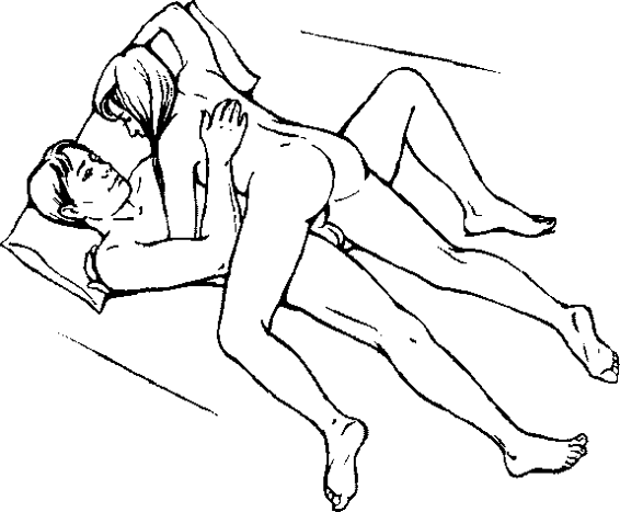 Другая поза, повышающая шансы на успех, называется «Lateral Coital Position» (латеральная позиция). Она была изобретена командой Уильяма Мастерса и Вирджинии Джонсон и оказалась предпочтительной для 75% участников их исследования (после того как они научились ее применять). Вы начинаете с традиционного положения «женщина сверху», затем передвигаетесь так, чтобы ноги мужчины были разведены в стороны, а правая нога женщины оказалась между ними. Женщина затем наклоняется к нему и поворачивается слегка вправо, чтобы достать головой и плечами до поверхности кровати. Преимущество этой позы, по мнению Мастерса и Джонсон, высказанному в работе «Human Sexual Inadeqancy», заключается в том, что «здесь мужчина и женщина не прижаты друг к другу. Есть взаимная свобода движений таза в любом направлении, и нет стеснения мышц или необходимости поддерживать вес тела». Это высокоманевренная поза с неглубоким проникновением, в которой оба партнера в равной степени контролируют движения, повышая шансы на оргазм.