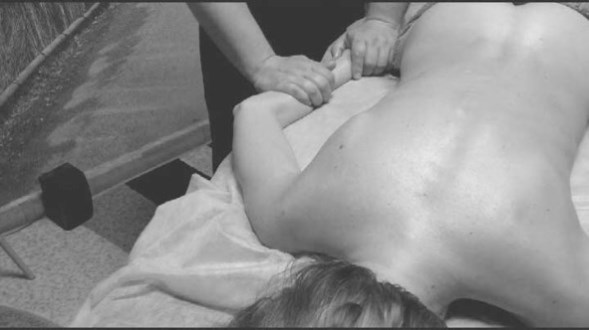 Выполняйте прием 1–2 минуты, затем выполните поглаживание по спине и переведите руку женщины в положение назад, вдоль тела. Нанесите масло на внутреннюю поверхность руки от плеча до ладони.