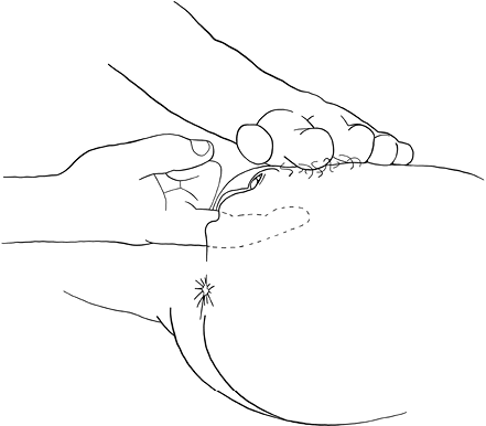 • Вдобавок к движениям пальца типа «Иди-ка сюда» надавите всей поверхностью вытянутого пальца на переднюю стенку влагалища и, удерживая это положение, надавите чуть сильнее. Не бойтесь сделать слишком большое усилие. Узел нервных окончаний клитора не так чувствителен к прикосновениям, как его головка, и хорошо реагирует на стойкое, сильное давление