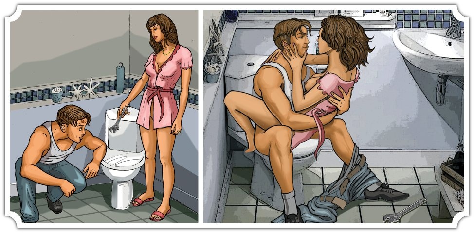 …Возясь с бачком унитаза, он специально дотрагивался до ее ноги, как бы невзначай задирая халат, а, беря у нее ключ и опять возвращая, каждый раз заглядывал снизу. Похоже, там не было трусиков, халат был надет на голое тело, и в штанах у него зашевелилось.