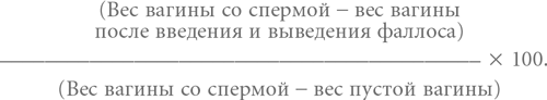 Искусственная сперма посредством шприца впрыскивается в вагину, предварительно смазанную лубрикантом (теперь уже из «Калифорния Экзотик Новелтиз»). Перед включенной видеокамерой были введены и удалены три различных фаллоса, в том числе и контрольный – без венчика на головке. Чтобы увидеть, сколько семени соперника удастся выдавить каждому фаллосу, вагину[52] взвешивают до и после. Результаты подкрепляли теорию группы: оба правдоподобных фаллоса (покупатели «Калифорния Экзотик Новелтиз» называют их «донгами») вытеснили 91 % семени, тогда как контрольный донг без утолщения оставил после себя 65 %.
