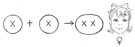 Если яйцеклетку оплодотворит Х-спермий, то будет девочка: Х + Х ? ХХ ?, если Y-спермий, то мальчик: Х + Y ? XY ?.