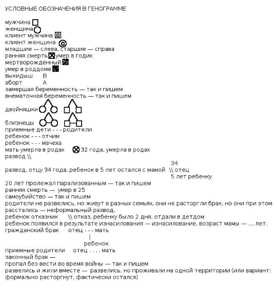 Условные обозначения в генограмме