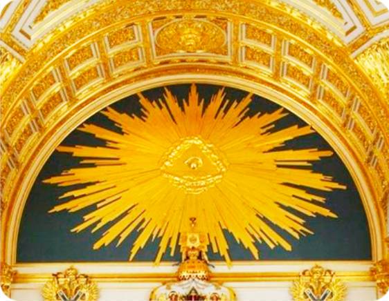 Такой же изображен на долларе. Такое же изображение треугольника,