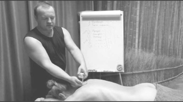 Таким образом, подушечки больших пальцев поочередно проминают мышцы от основания черепа до плечевого сустава, а движение в обратном направлении происходит без усилия.