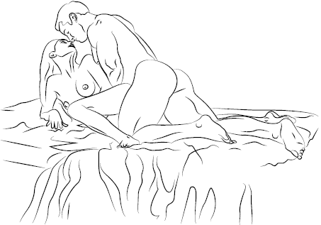 «Ключику» здесь предстоит простая работа: он может проскользнуть точно внутрь. Слишком долгое пребывание в такой позиции тяжеловато для «замочка», поскольку создает напряжение в спине или плечах, так что держите под рукой массажное масло! И все же, если сумеете продержаться подольше, эта позиция очень выигрышна. Необычный угол решает все: поскольку ее туловище перекручено, это обеспечивает «тесную пригонку». Боковые позиции, подобные этой, всегда неплохо иметь в репертуаре, поскольку они добавляют еще одну трактовку вечному вопросу: «кто сверху» и, как правило, обеспечивают плотный охват.
