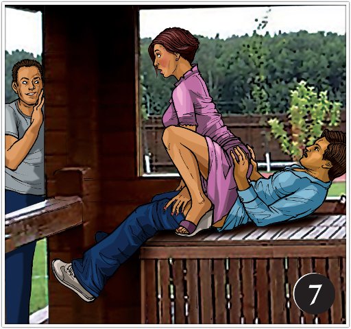 Если конюшни или сеновала у вас нет, не беда. Найдите другое необычное место, например, беседку, как показано на этом рисунке. Ну, увидит вас кто-нибудь, и что такого? Пусть ему же и будет стыдно за другими подглядывать, но вот именно это ощущение, что вас могут застукать, особым образом обострит ощущения, что, собственно говоря, и нужно. Если вы еще не пробовали подобную аферу, рискните, вдруг вы почувствуете особый азарт от такой игры. Наша сексуальность – тайна за семью печатями, и чем сильнее ее удастся раскрыть, тем больше удовольствия можно получить от жизни.