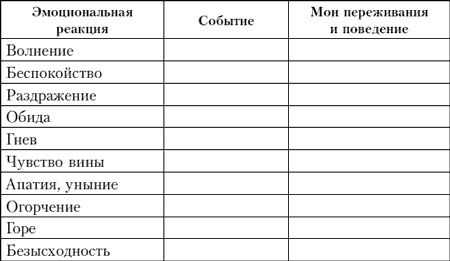 В третьем столбце вам будет необходимо отметить то, как проявлялось ваше переживание, какие действия, поступки вы совершили под влиянием эмоций в конкретной ситуации.