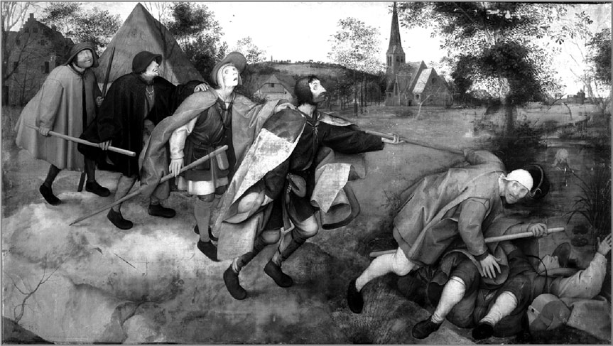 Великолепный пример для средневековой картины о слепых, бредущих в связке по извилистой дороге (см. с. 25).
